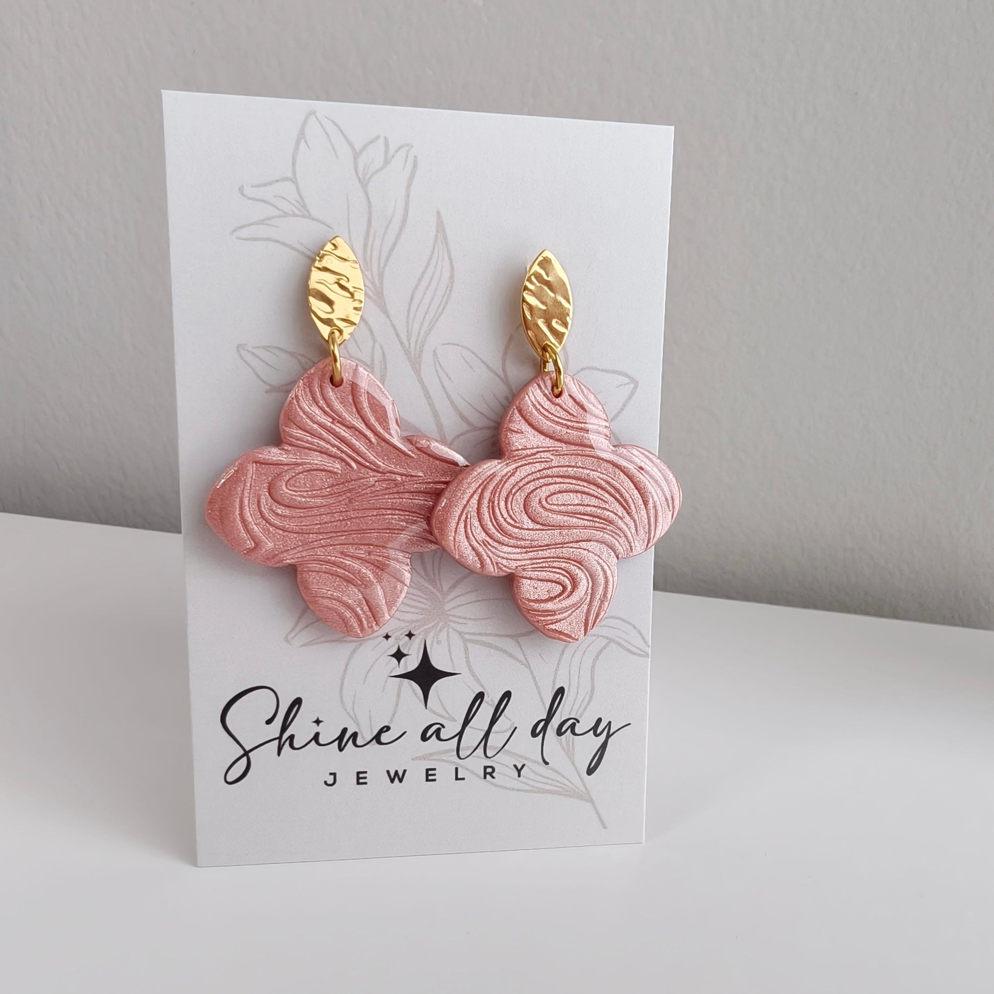 Polymeerklei oorbellen klaver rosé goud